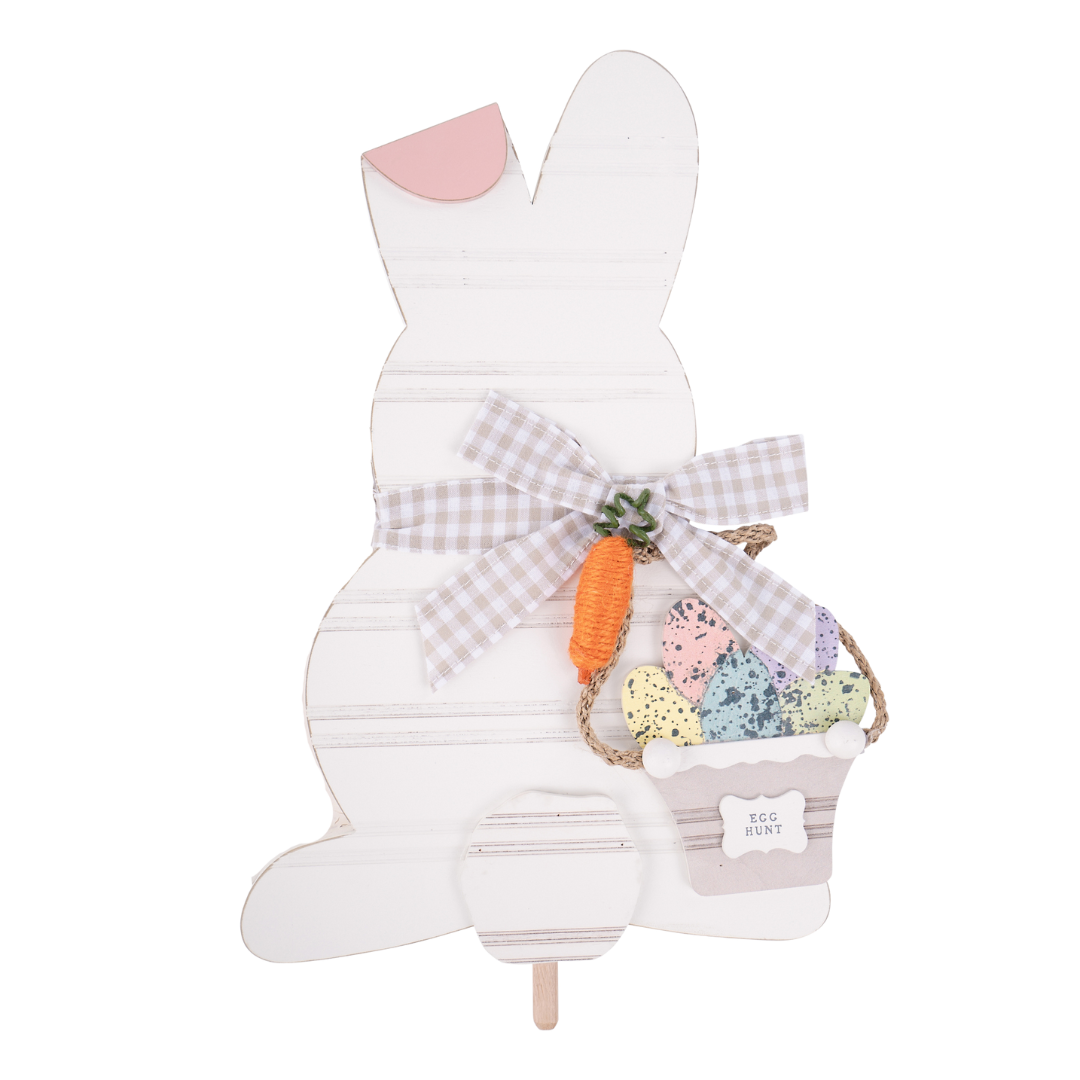 Get ready for Easter celebrations with this fun Bunny Topper with an Easter basket full of eggs and an "Egg Hunt" sign! Interchangeable spring decor never looked so cute when you place this topper on one of our welcome boards or stand bases (sold separately). Bring the charm of Easter to each guest who sees this playful design!
