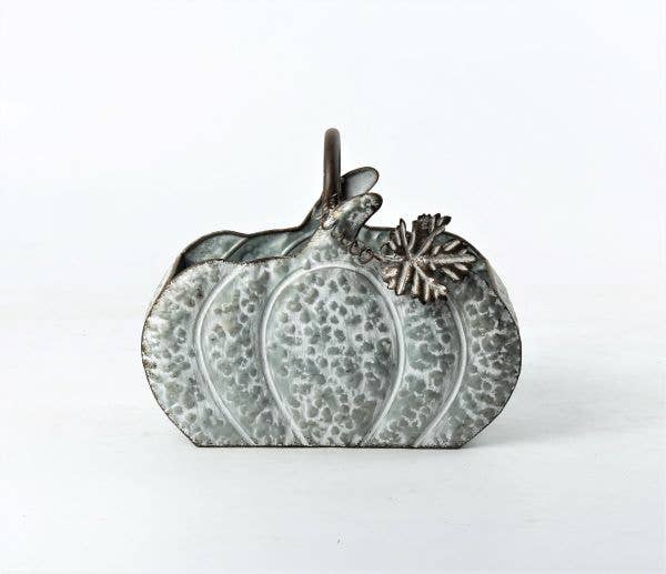 GRAY ZINC & WHITE WASH PUMPKIN PLANTER 4" L X 10.50"WX H 9"